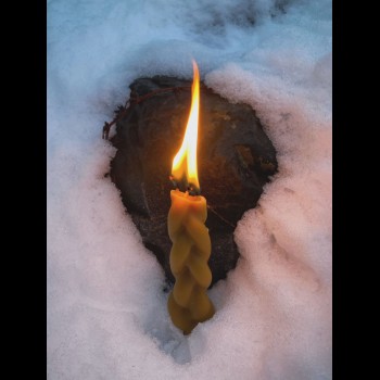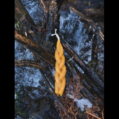 A single triple-wicked braided and hand-dipped beeswax candle, made to accompany spellwork, devotional practices, yearly rituals, and offerings.