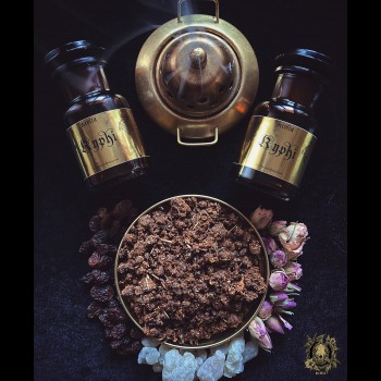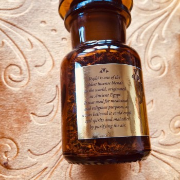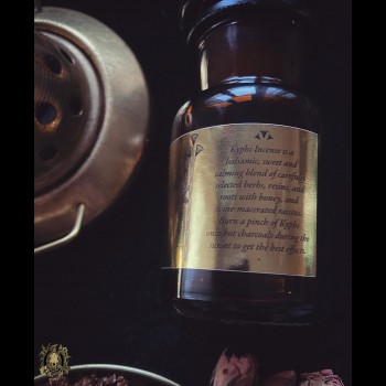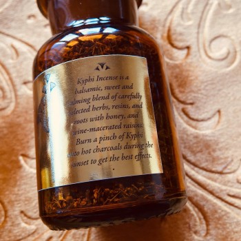 Our version of the Kyphi (a word derived from the ancient Egyptian kap-t 'to perfume, to ignite') is a balsamic, sweet, and calming blend of carefully selected herbs, resins, and roots with honey, and wine-macerated raisins. Burn a pinch of Kyphi onto hot charcoals during the sunset to get the most of its transformative, invigorating, healing, and warming effects.