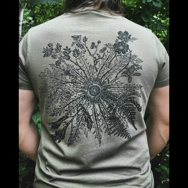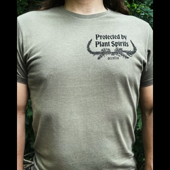 Esta majestuosa ilustración de la artista española Iria Moura presenta los Espíritus Vegetales asociados con la Protección en la etnobotánica occidental y mediterránea. En el anverso, la frase Protected by Plant Spirits «Protegidx por los Espíritus de las Plantas» está flanqueada por gordolobo, hisopo, ajenjo y una abeja. En el reverso, una enorme cardincha se presenta acompañada de escaramujos, helechos, laurel, roble y majuelo, los protectores más poderosos del Reino Verde.