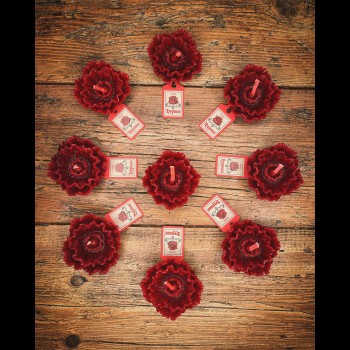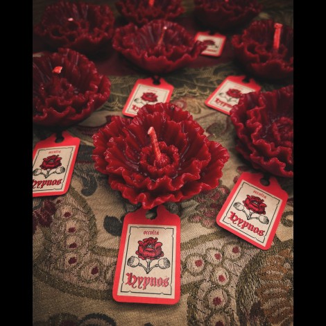 Inspirada en Demeter, Perséfone y la deidad del sueño, Hipnos, ofrecemos una vela de cera de abejas artesanal en color rojo sangre con la forma de la flor de adormidera, emblema del sueño y la renovación.