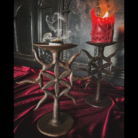 Forjado por el talentoso artesano Óxido Ritual Art, esta versátil pieza sirve tanto como soporte para velones, velas, y también como quemador de incienso. Cada pieza presenta una radiante hexapétala, símbolo de protección, calidez, luz e integración del ciclo natural.