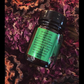 Los espíritus pueden hacernos una visita de vez en cuando, y este Polvo está pensado para actuar como un umbral que atrae a los espíritus benéficos a la vez que ahuyenta a los espíritus malintencionados. Es una señal de conciencia, reverencia y recuerdo. Este polvo está compuesto de ámbar, pétalos de rosa, pétalos y semillas de amapola, helicriso, paja de avena, ortiga y enebro. Espolvoréalo sobre espacios, habitaciones, altares, velas y ofrendas que sirvan a lo Liminal.