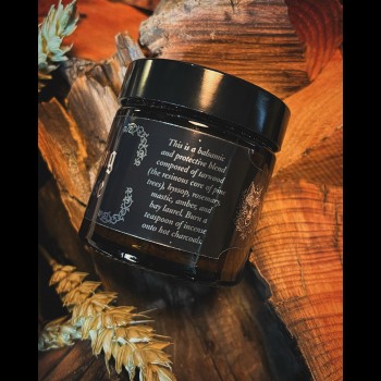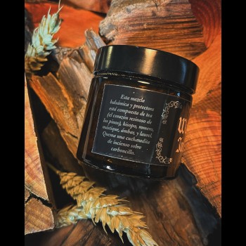 Esta mezcla balsámica y protectora está compuesta de tea (el corazón resinoso de los pinos), hisopo, romero, mástique, ámbar, y laurel.