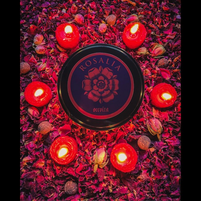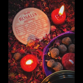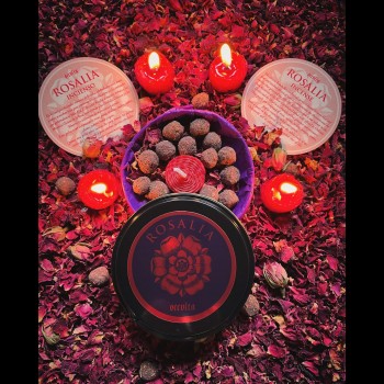 En los antiguos festivales romanos de las Rosalia, celebrados entre mayo y junio, se usaban rosas para conmemorar a los Ancestros y a las entidades que gobernaban el Más Allá. El Incienso Rosalia es nuestro tributo a los Misterios Oscuros de la Rosa, una ofrenda a las Deidades Ctónicas y a los Muertos en celebración de su presencia y ayuda.