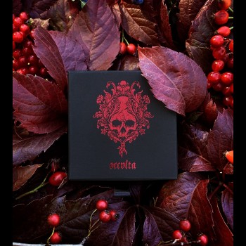 La Calavera Coronada que decora la caja ha sido magistralmente dibujado por Victoria Francés y cada caja contiene cuatro botes metálicos de 15 ml con cada uno de los inciensos de otoño: