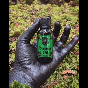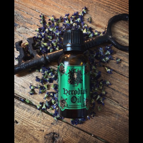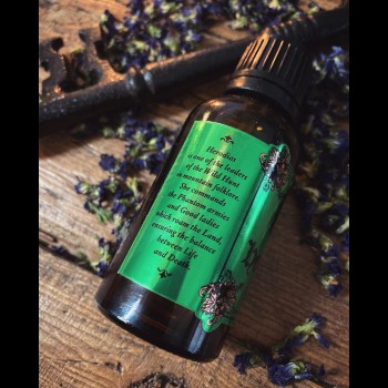 Herodías es una de las líderes de la Cacería Salvaje en el folklore pirenaico. Ella lidera las comitivas de Espectros y Buenas Damas que vagan por el Territorio, asegurando el equilibrio entre la Vida y la Muerte. Este aceite está compuesto de rosas, lilas, violetas y cedro infusionados con aceite de almendras. Utiliza este aceite para ungir tus herramientas o a ti mismo cuando contactes con esas entidades o lleves a cabo experiencias de Vuelo del Espíritu. Se puede usar en la piel.